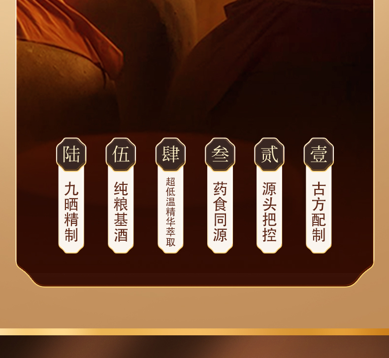 清香型白酒(高粱 饮用水)、饮用纯净水 鹿尾(人工养殖梅花鹿) 冰糖、当归、黄精、覆盆子 枸杞等